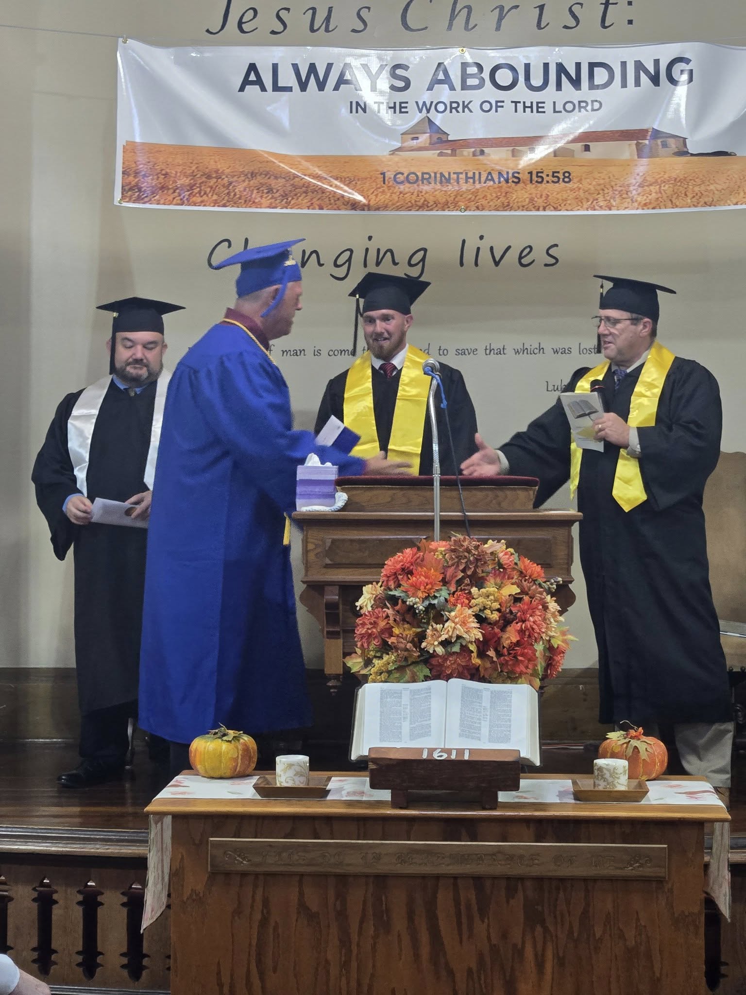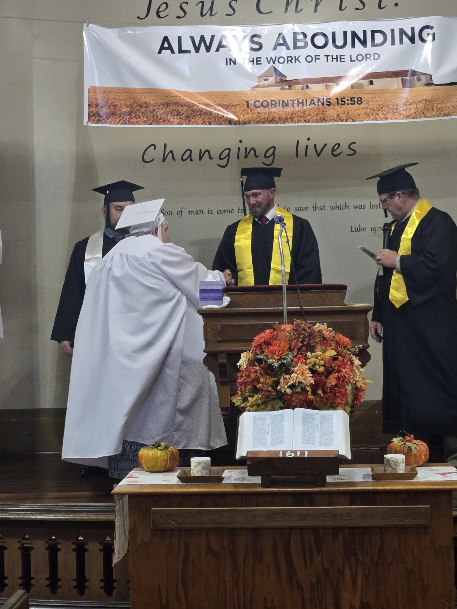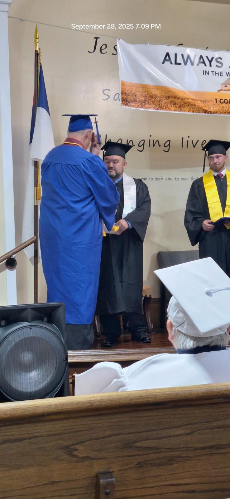 Graduation is held each year in September, and ceremonies may take place at any of our partner churches so that students living near those locations can attend in person.